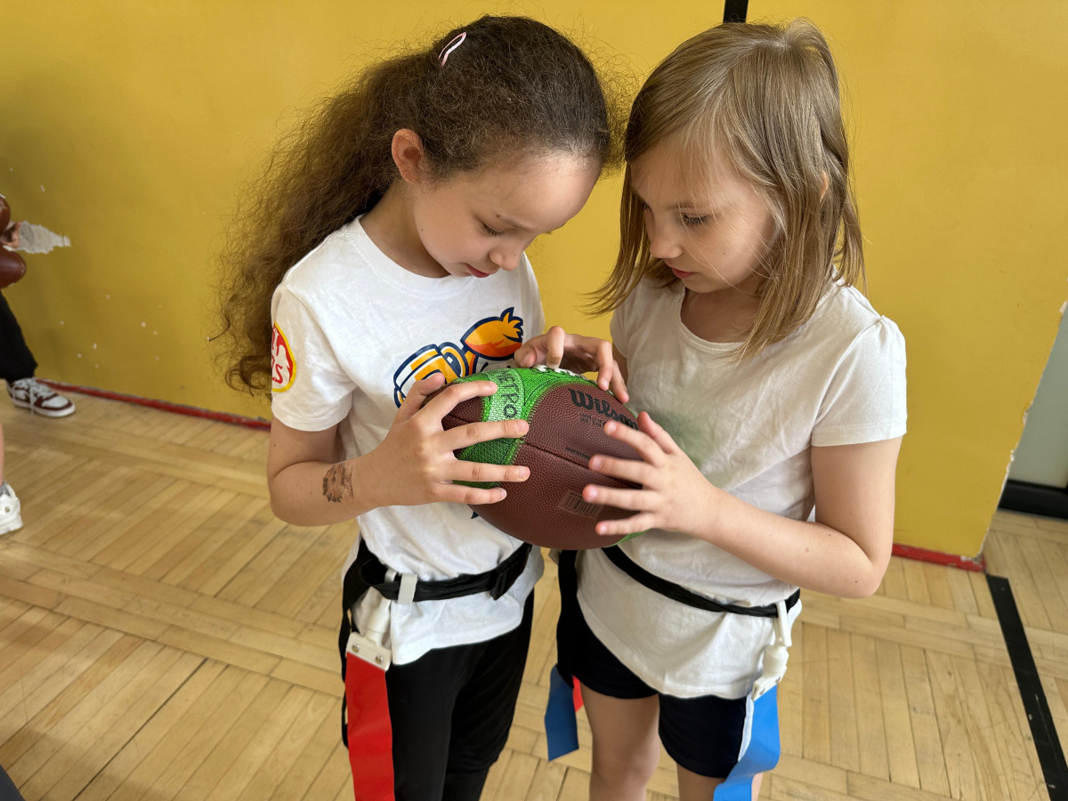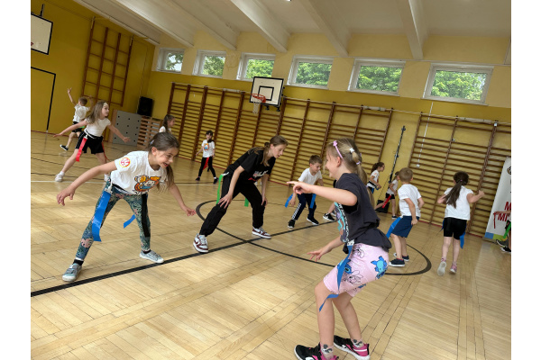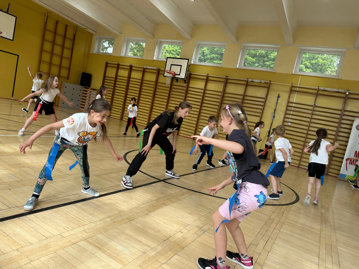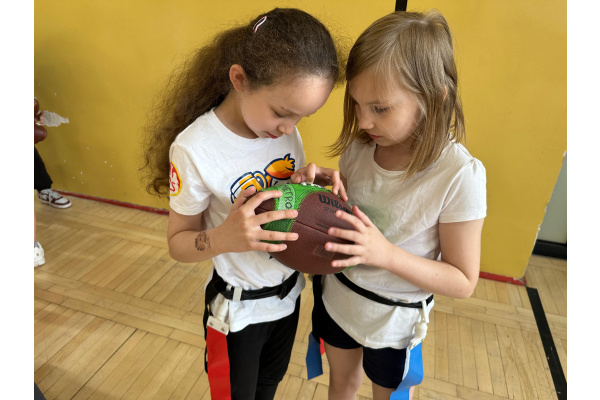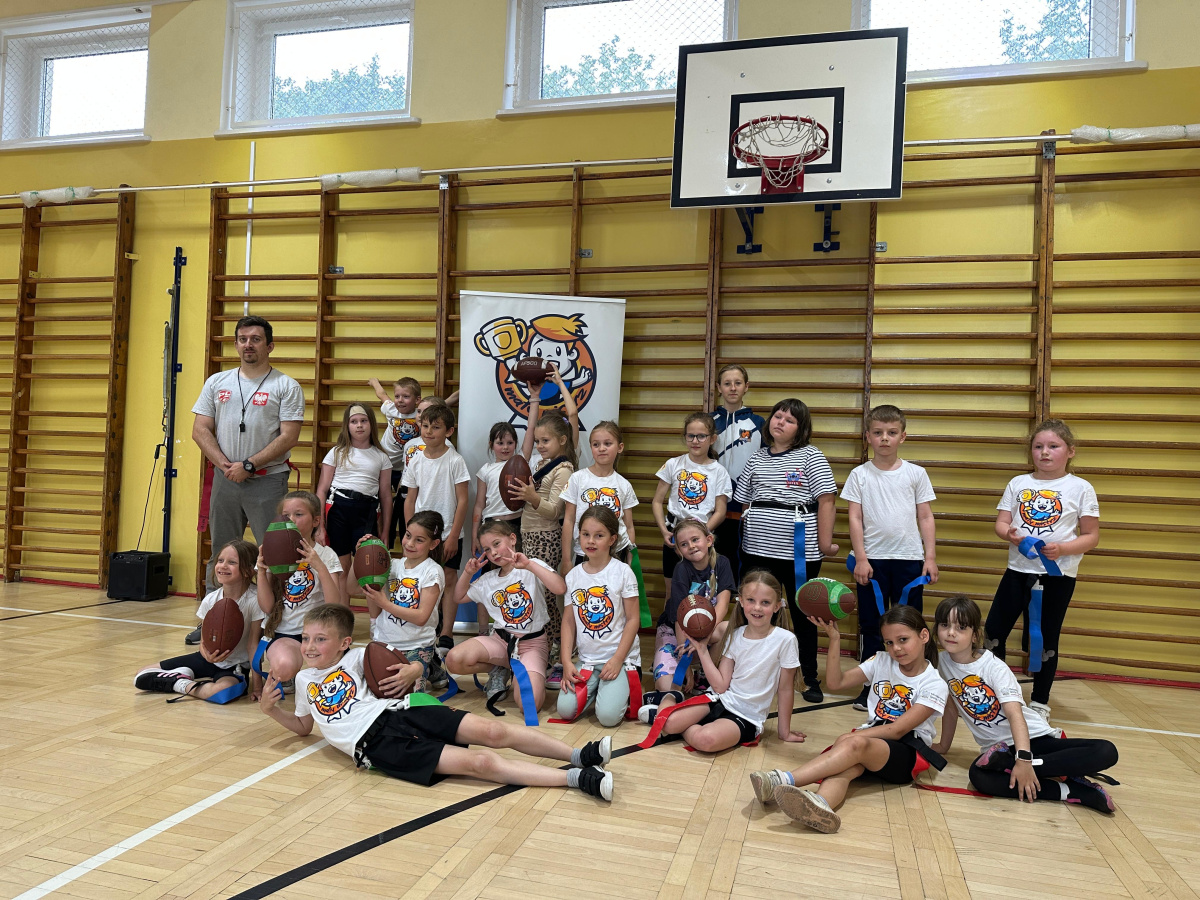 W środę, 11 czerwca odwiedził nas Karol Chodor – trener jedynej w Bydgoszczy drużyny futbolu flagowego - METROPOLITANS, który wraz z Amelią Czyż naszą koleżanką z klasy 7b, poprowadził trening dla klasy 1a i klasy 2a. Tym razem mieliśmy okazję poznać zasady tej dynamicznie rozwijającej się dyscypliny sportu oraz dowiedzieć się, jak wygląda trening i praca w drużynie. Spotkanie z trenerem Chodorem wzbudziło ogromne zainteresowanie i pokazało, że sport to nie tylko rywalizacja, ale także współpraca i dobra zabawa.