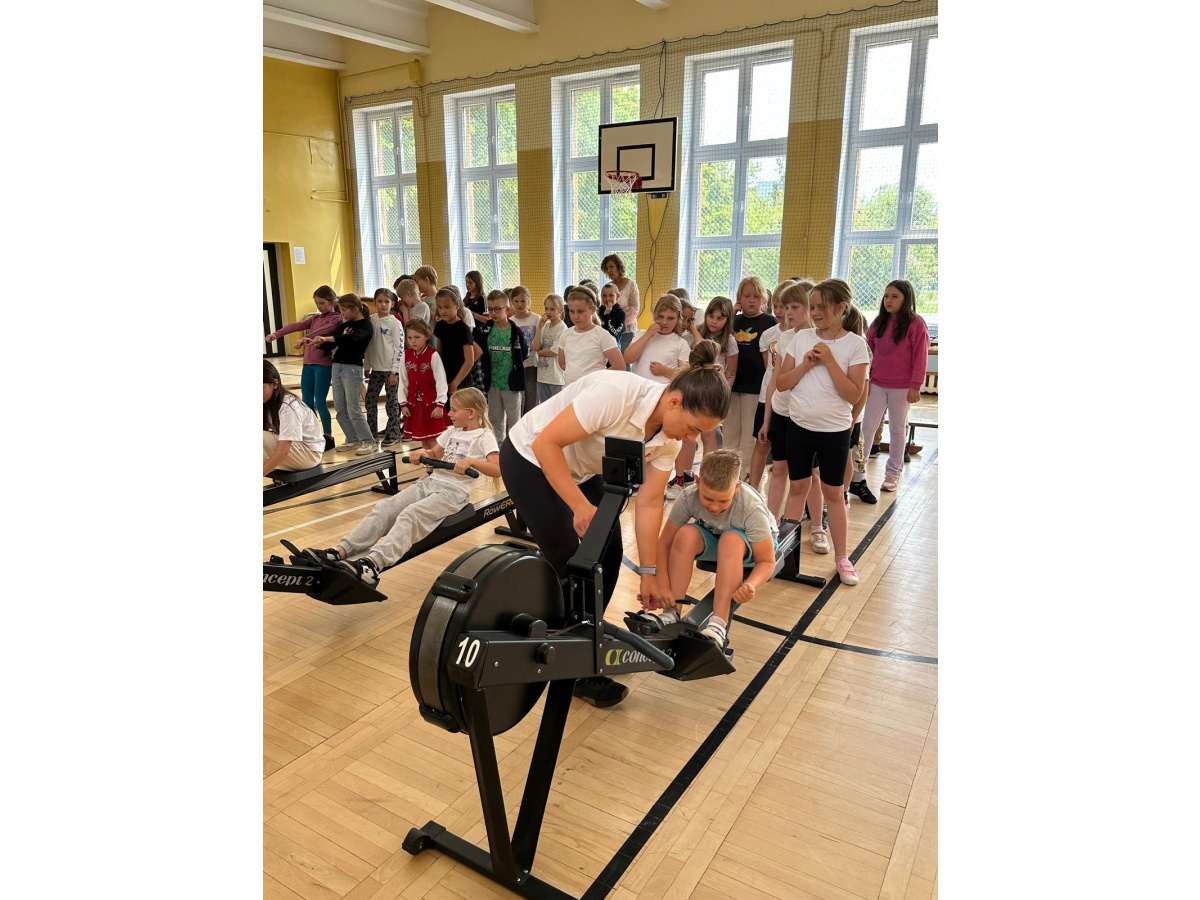 W poniedziałek, 9 czerwca gościliśmy w naszej szkole Magdalenę Fularczyk - Kozłowską - medalistkę igrzysk olimpijskich w wioślarstwie. Pani Magdalena podzieliła się z nami swoją sportową pasją, opowiedziała o drodze na olimpijskie podium i zachęcała nas do wytrwałości w dążeniu do celu. W trakcie spotkania mogliśmy również poćwiczyć na ergometrach, wypróbować swoje siły i poczuć się jak prawdziwi wioślarze. Spotkanie było pełne pozytywnej energii, motywacji i inspiracji do podejmowania sportowych wyzwań.