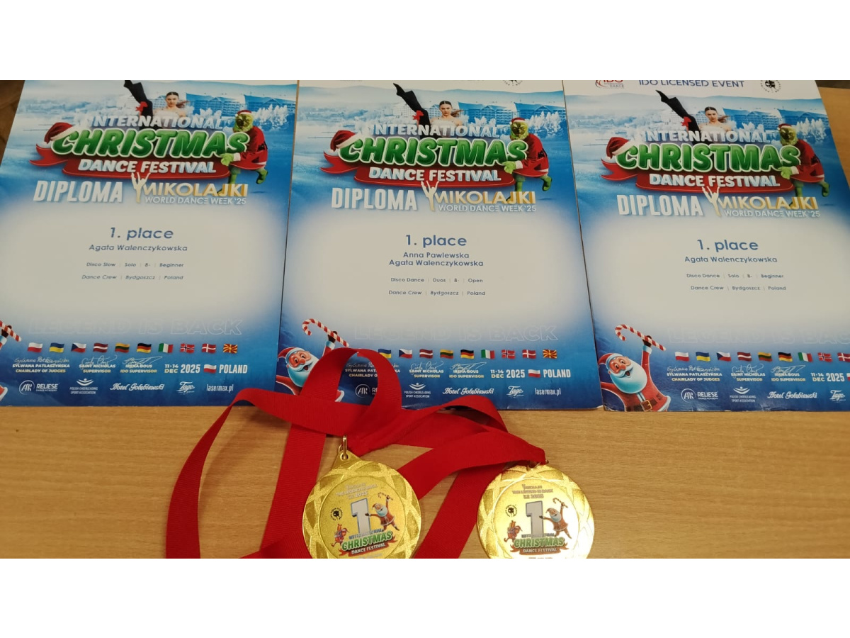 Agata Walenczykowska, uczennica klasy 2c, zdobyła w ten weekend (13-14.12) trzy pierwsze miejsce w Międzynarodowym Konkursie Tańca w Mikołajkach na Mazurach. Gratulujemy sukcesów!