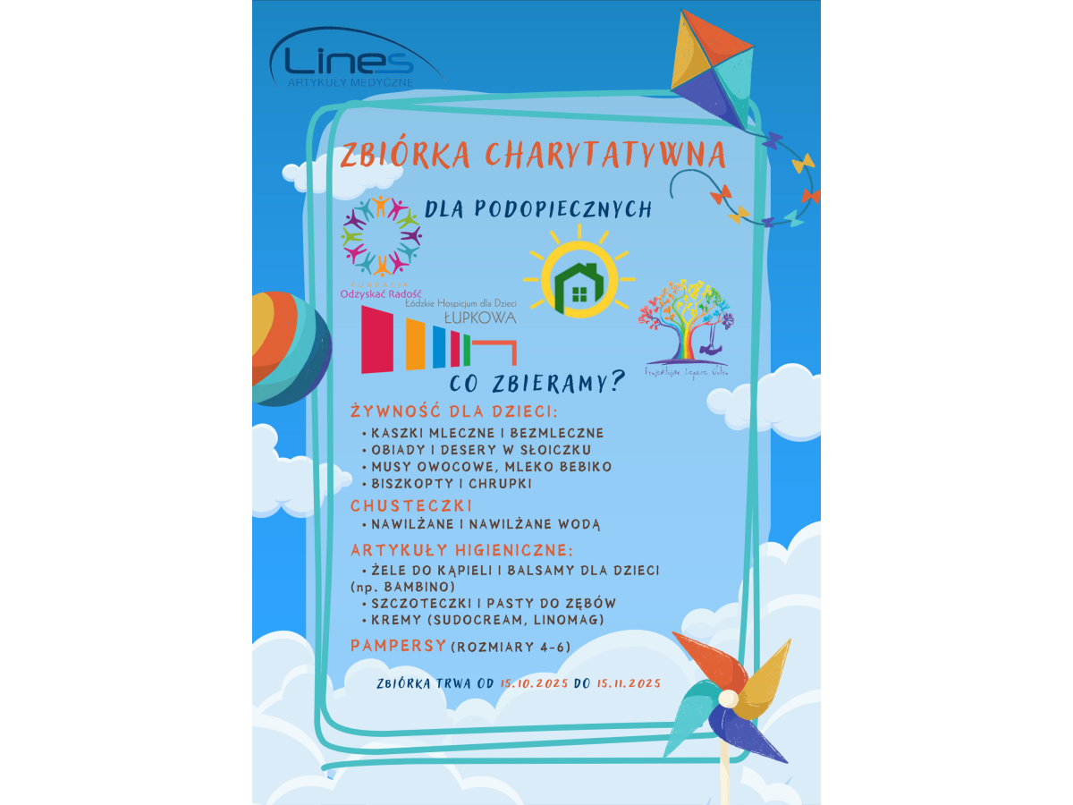Z każdym rokiem zbiórka rośnie w siłę, a jej znaczenie staje się coraz bardziej widoczne. Ta piękna tradycja, która łączy, pozwala nam wspólnie działać na rzecz tych, którzy najbardziej tego potrzebują. W tym roku kierujemy pomoc do Hospicjów i Domu Pomocy Społecznej dla dzieci: Stowarzyszenia Łódzkiego Hospicjum dla Dzieci – Łupkowa, Fundacji Odzyskać Radość z Kraszewa-Czubaki, Domu Pomocy Społecznej SŁONECZKO w Bydgoszczy, a także Stowarzyszenia Projektując Lepsze Jutro z Bydgoszczy, które to wspiera Podopiecznych z bydgoskich Domów Dziecka i Mieszkań Usamodzielniania.