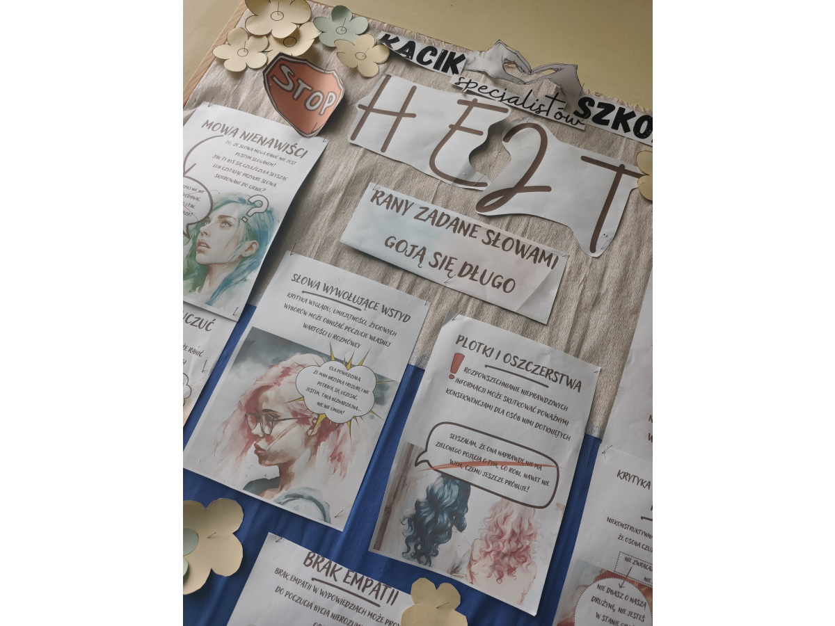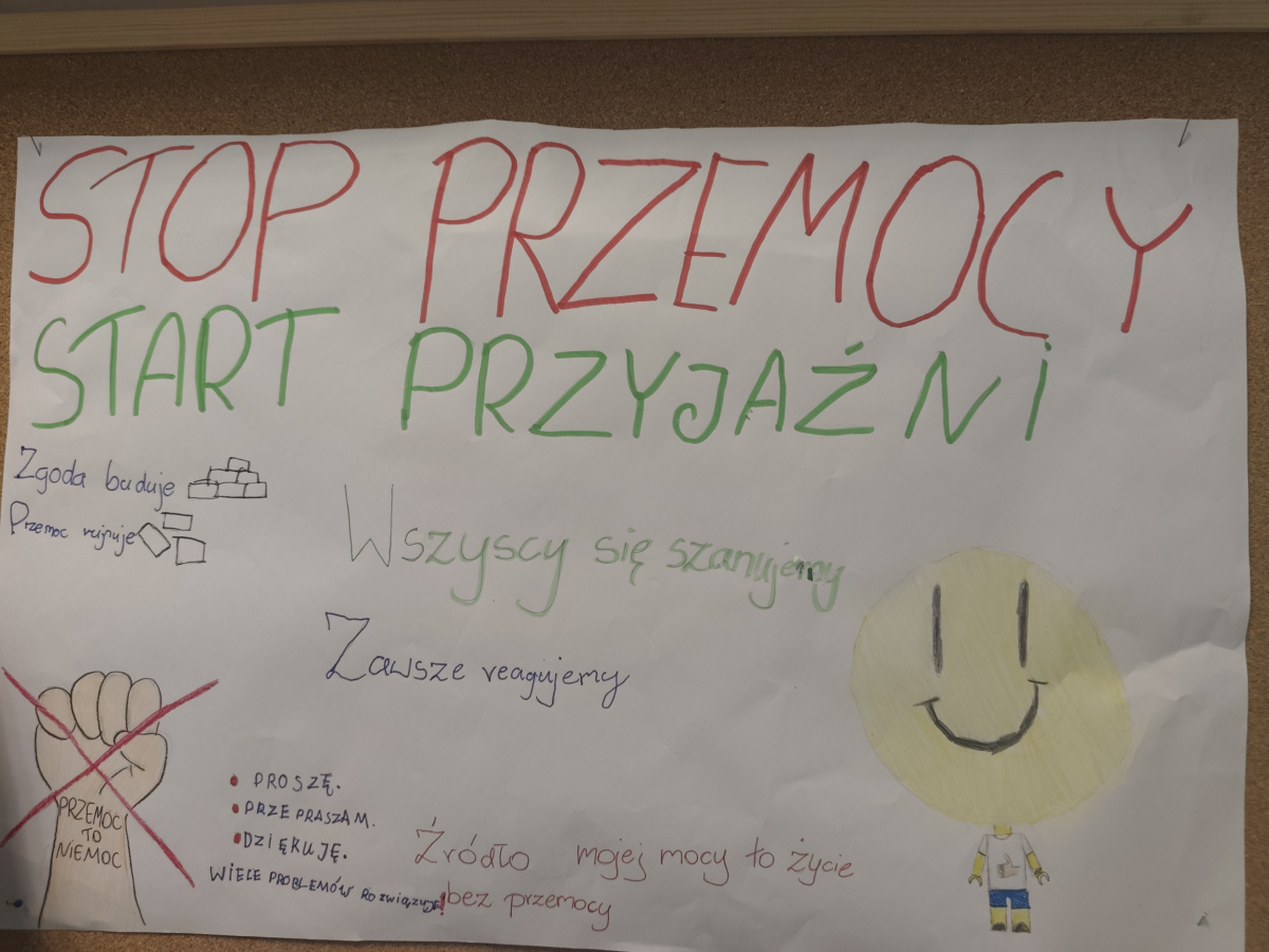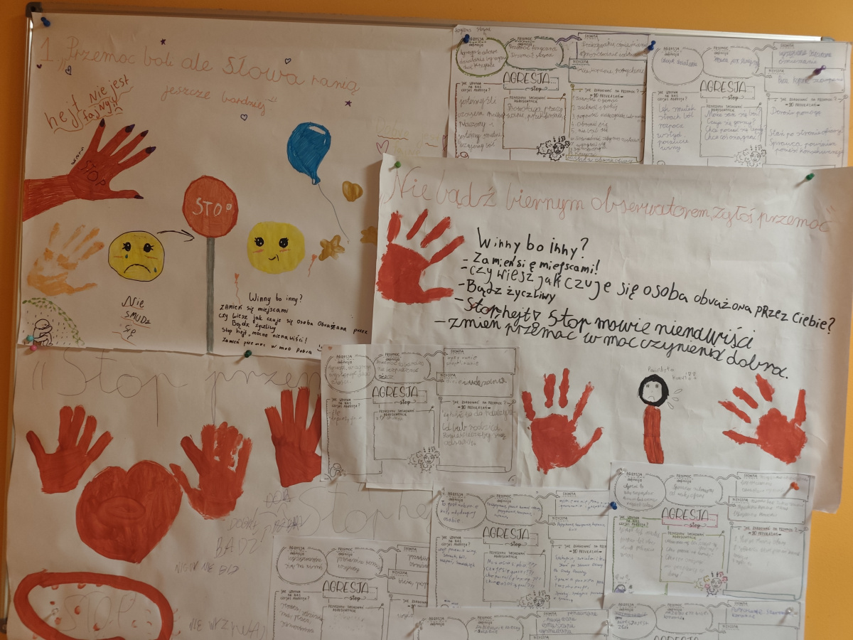 W minionym tygodniu nasza szkoła włączyła się w obchody Tygodnia Przeciwdziałania Przemocy Rówieśniczej. W ramach działań profilaktycznych uczniowie uczestniczyli w zajęciach warsztatowych, rozmowach wychowawczych oraz akcjach plastycznych promujących szacunek, życzliwość i empatię.