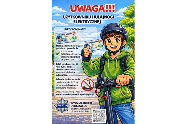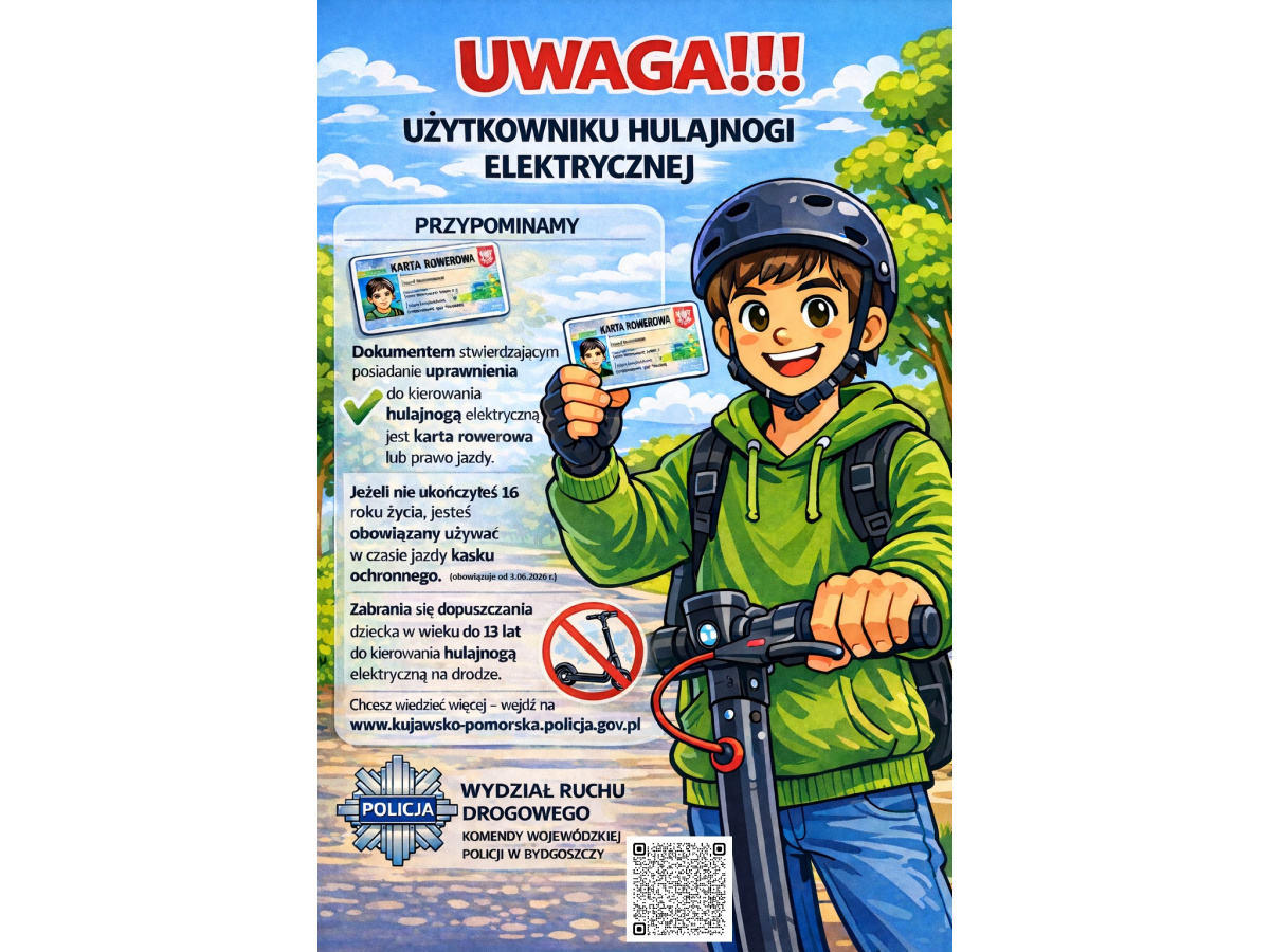 Nowe regulacje prawne w szczególności dotyczą podwyższenia minimalnego wieku uprawniającego do kierowania hulajnogą elektryczną i UTO - Urządzenie Transportu Osobistego, do których zaliczane są: